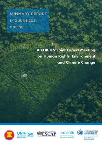 AICHR Thailand and AICHR Myanmar conducted the AICHR Workshop on Human Rights, Environment and Climate Change: Advancing rights-based approaches to environmental decision making including through environmental impact assessment mechanisms, on 8-10 June 2021, online. This document summarizes the AICHR Workshop and AICHR-UN Joint Expert Meeting which was held in partnership with Office of the United Nations High Commissioner for Human Rights (OHCHR), United Nations Environment Programme (UNEP), United Nations Children’s Fund (UNICEF), and Economic and Social Commission for Asia and the Pacific (ESCAP).