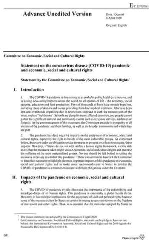 COVID-19: Statement by the Committee on Economic, Social and Cultural Rights