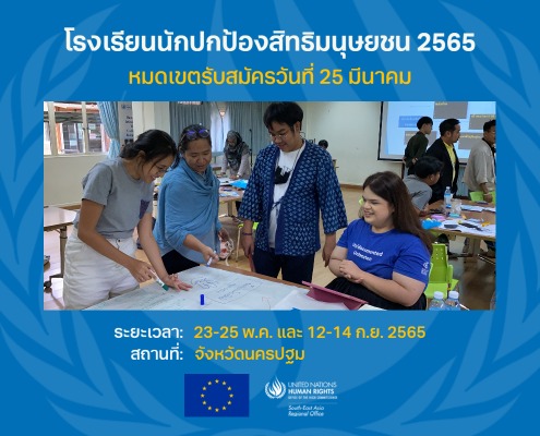 The UN Human Rights Office for South-East Asia in Bangkok is now accepting applications from Thai human rights defenders from today until 25 March 2022 to attend our Human Rights Defenders School Programme. The course aims to enhance the capacity of mid-level human rights professionals in Thailand. The programme, which started in 2014, has trained at least 123 Thai human rights defenders, most of them women.