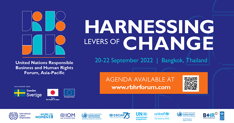 The UN Human Rights Office for South-East Asia is co-organizing the 4th UN Responsible Business and Human Rights Forum under the theme “Harnessing Levers of Change” with other UN agencies from 20-22 September 2022. The forum will be held onsite at UN Conference Center, UNESCAP Bangkok along with live streaming of the sessions which are open to the public.