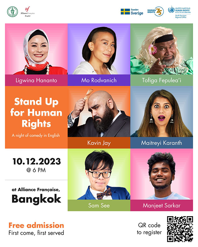 Join UN Human Rights, the Bangkok Metropolitan Administration and Alliance Française for “Stand-Up for Human Rights”, a night of comedy in English in Bangkok!