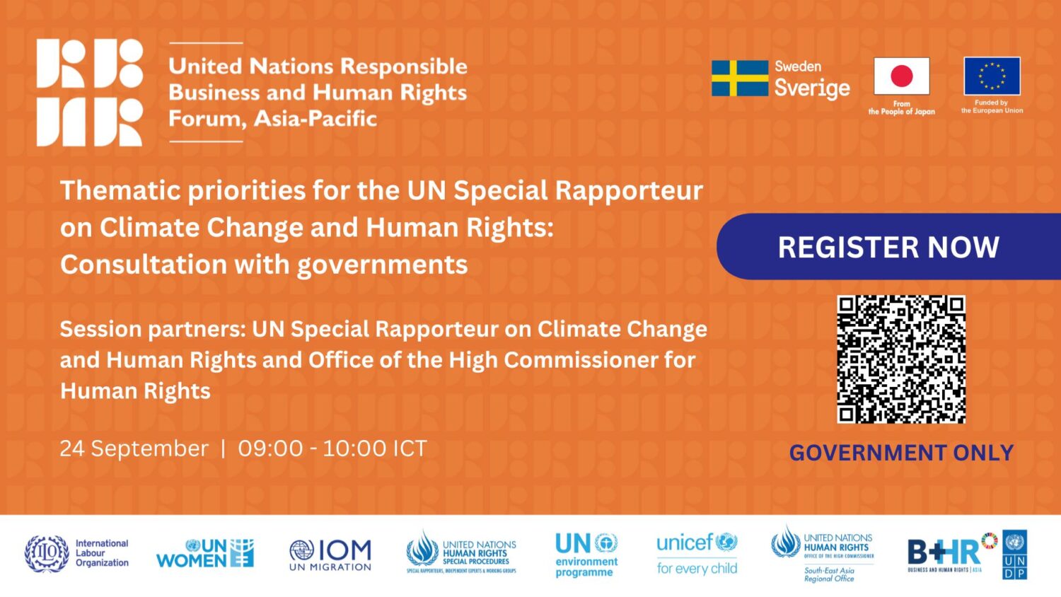 CONSULTATION: Thematic priorities for the UN Special Rapporteur on Climate Change and Human Rights: Consultation with governments (in-person only)