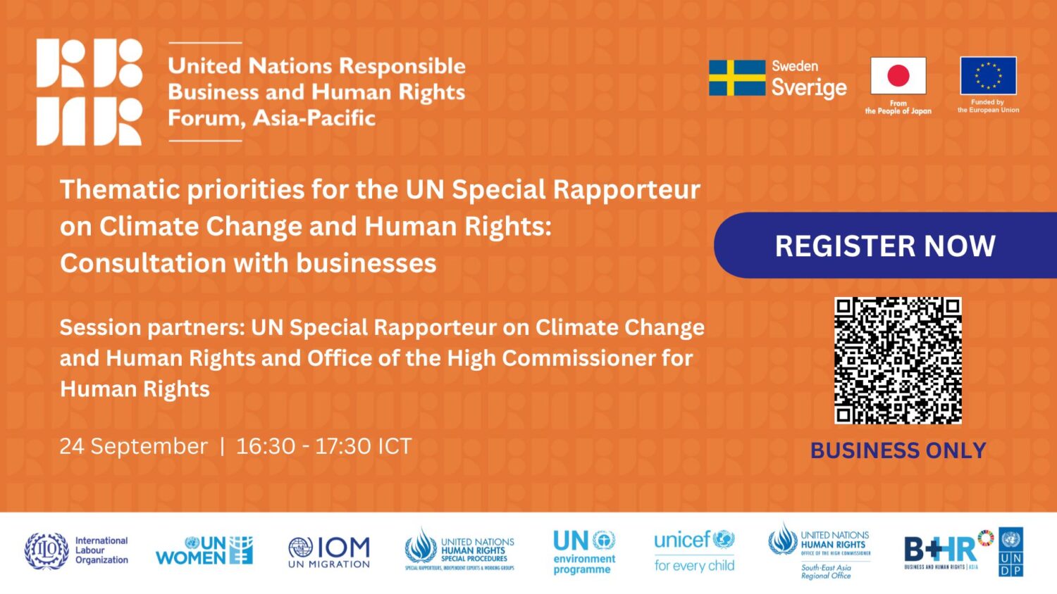 CONSULTATION: Thematic priorities for the UN Special Rapporteur on Climate Change and Human Rights: Consultation with businesses (in-person only)