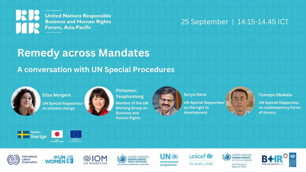 The UN Human Rights Office for South-East Asia is co-organizing the 6th UN Responsible Business and Human Rights Forum under the theme: “The Remedy Blueprint: Briding Gaps and Accelerating Access” with other UN agencies from 24-27 September 2024. The forum will be held onsite at UN Conference Center, UNESCAP Bangkok.