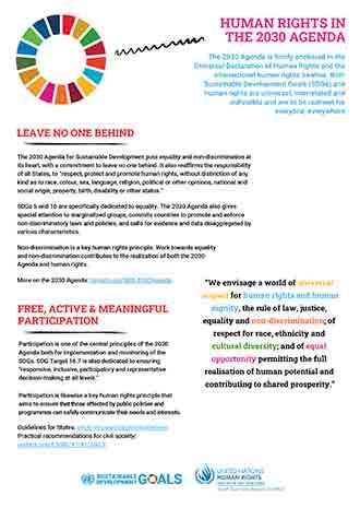 The 2030 Agenda is firmly anchored in the Universal Declaration of Human Rights and the international human rights treaties. Both Sustainable Development Goals (SDGs) and human rights are universal, interrelated and indivisible and are to be realised for everyone, everywhere.