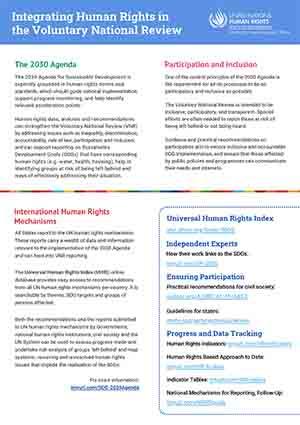 Human rights data, analysis and recommendations can strengthen the Voluntary National Review (VNR) by addressing issues such as inequality, discrimination, accountability, rule of law, participation, and inclusion, and can support reporting on Sustainable Development Goals (SDGs) that have corresponding human rights (e.g. water, health, housing), help in identifying groups at risk of being left behind and ways of effectively addressing their situation.