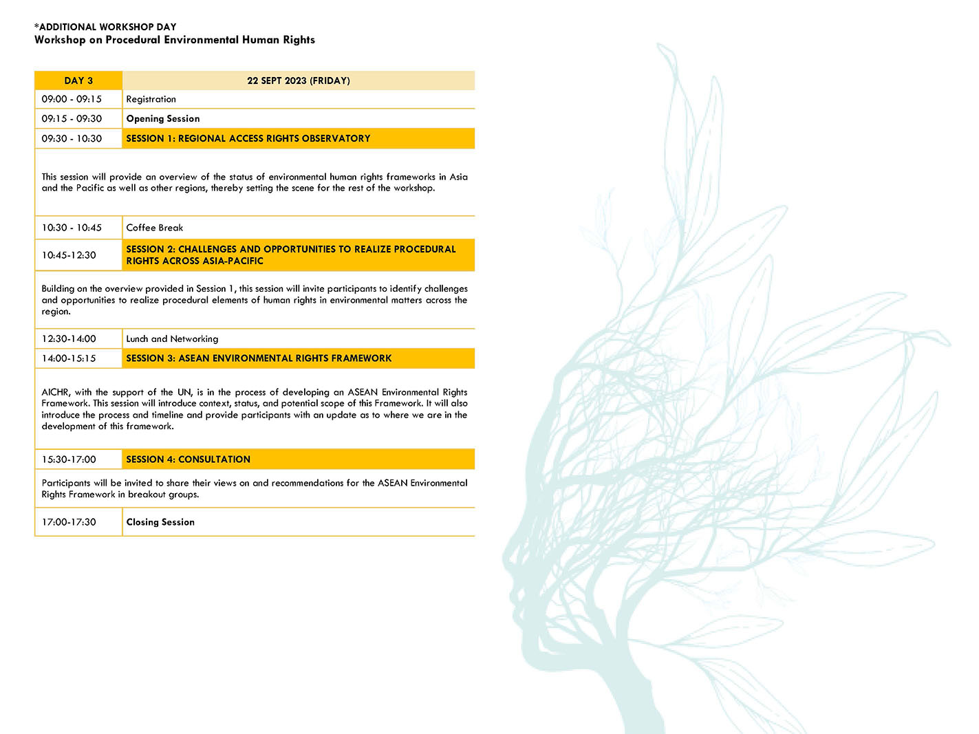 The 3rd Asia-Pacific Environmental Human Rights Defenders Forum will take place in person from Wednesday, 20 September to Thursday, 21 September 2023 with an additional workshop on Procedural Environmental Rights on Friday, 22 September 2023. The theme of this year’s Forum is Strengthening protection through data collection.