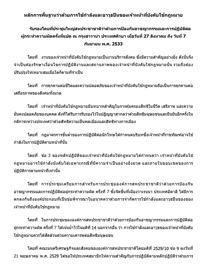 หลักการพื้นฐานว่าด้วยการใช้กำลังและอาวุธปืนของเจ้าหน้าที่บังคับใช้กฎหมาย (OHCHR Basic Principles on the Use of Force and Firearms by Law Enforcement Officials)